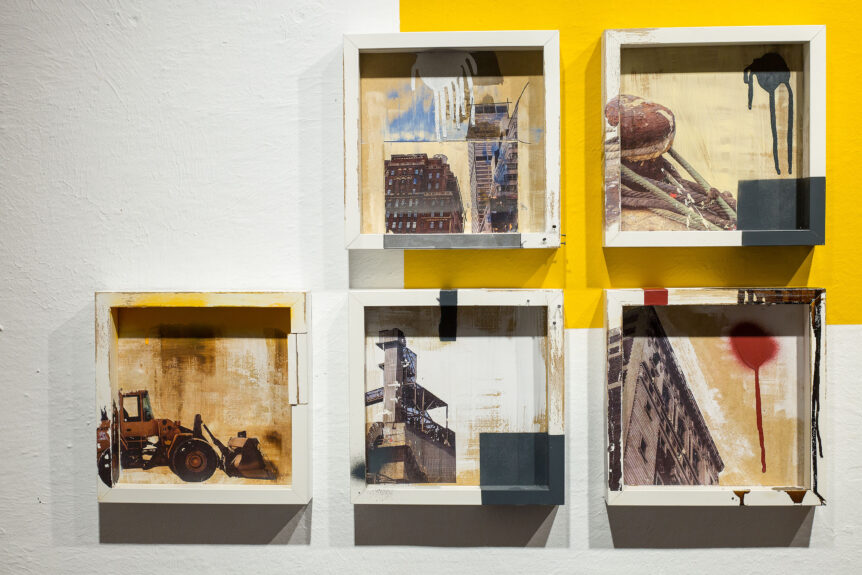 «Andar significa también acumular nostalgias de lugares. Recordamos apariencias de ciudades enteras por la arquitectura, los muros, las ventanas, las puertas… Los espacios recorridos y añorados se nos presentan simultáneos, ubicuos, al lugar por el que caminamos ahora, se superponen. Decía de Certeau que los lugares vividos son como presencias de ausencias […]. Los paisajes inventados por Pau Cassany parten de esta lógica del no lugar que supone la coincidencia imaginaria de los lugares vividos pero no habitados, convirtiéndolos en todos y en ninguno al mismo tiempo. Su proceso creativo recurre a esa mirada vagabunda, inconforme y frustada por no poseer la totalidad del espacio». Texto escrito por Dailey Fernández González.