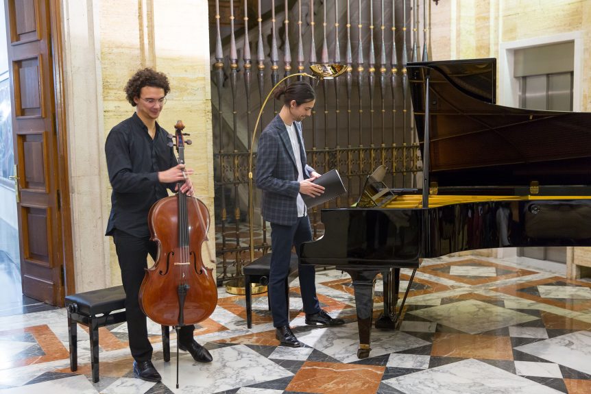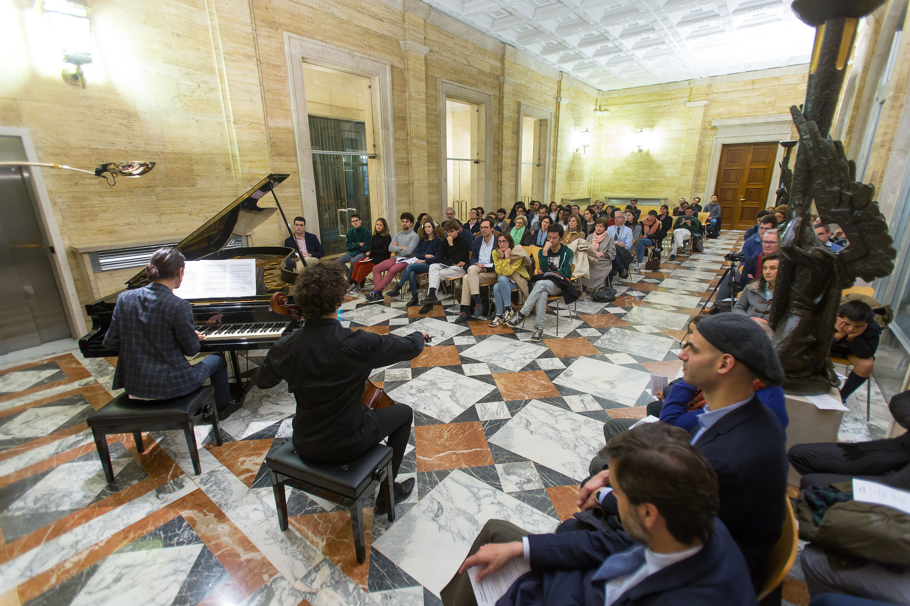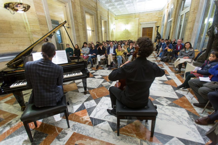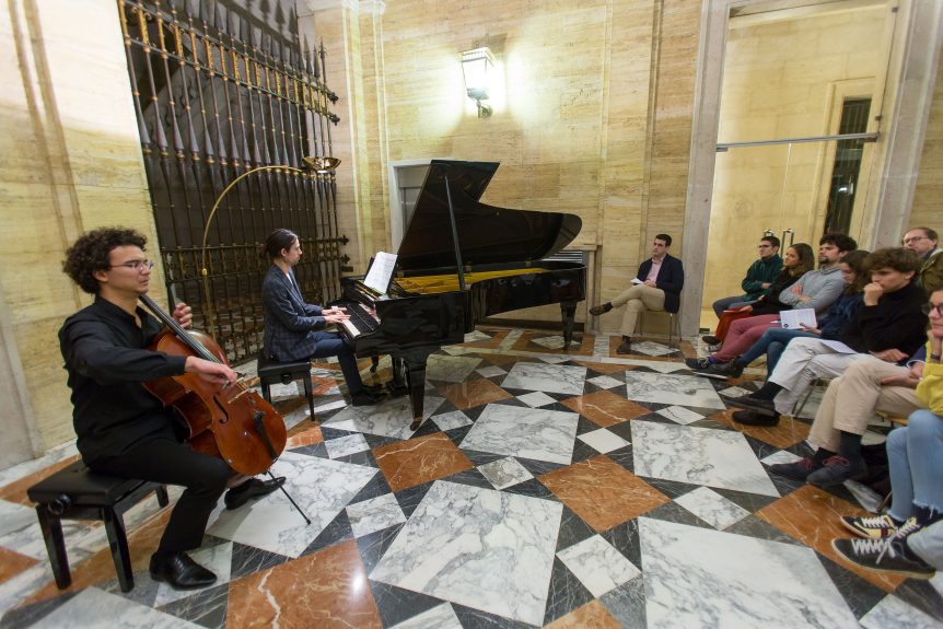El martes 19 de noviembre de 2019 tuvo lugar el concierto de piano y violonchelo organizado por el Colegio Mayor Belagua en el vestíbulo del Edificio Central de la Universidad de Navarra. Pierre Delignies (piano) y Fermín Villanueva (violonchelo) interpretaron obras de Debussy, Franck y Chopin.