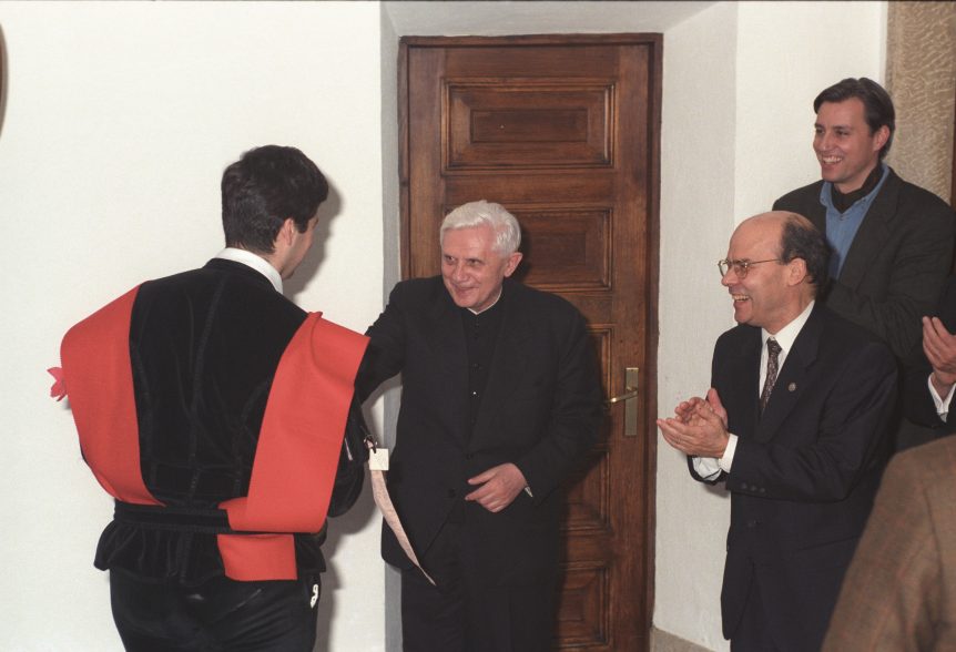 En la vida, es más fácil reconocer la importancia de lo que ocurre con la perspectiva del tiempo. Los que pudieron coincidir con el cardenal Joseph Ratzinger en su estancia en Pamplona en 1998 no podían imaginar que aquel intelectual que acudía la Universidad de Navarra para recibir la investidura como doctor honoris causa iba a ser elegido siete años después Papa.