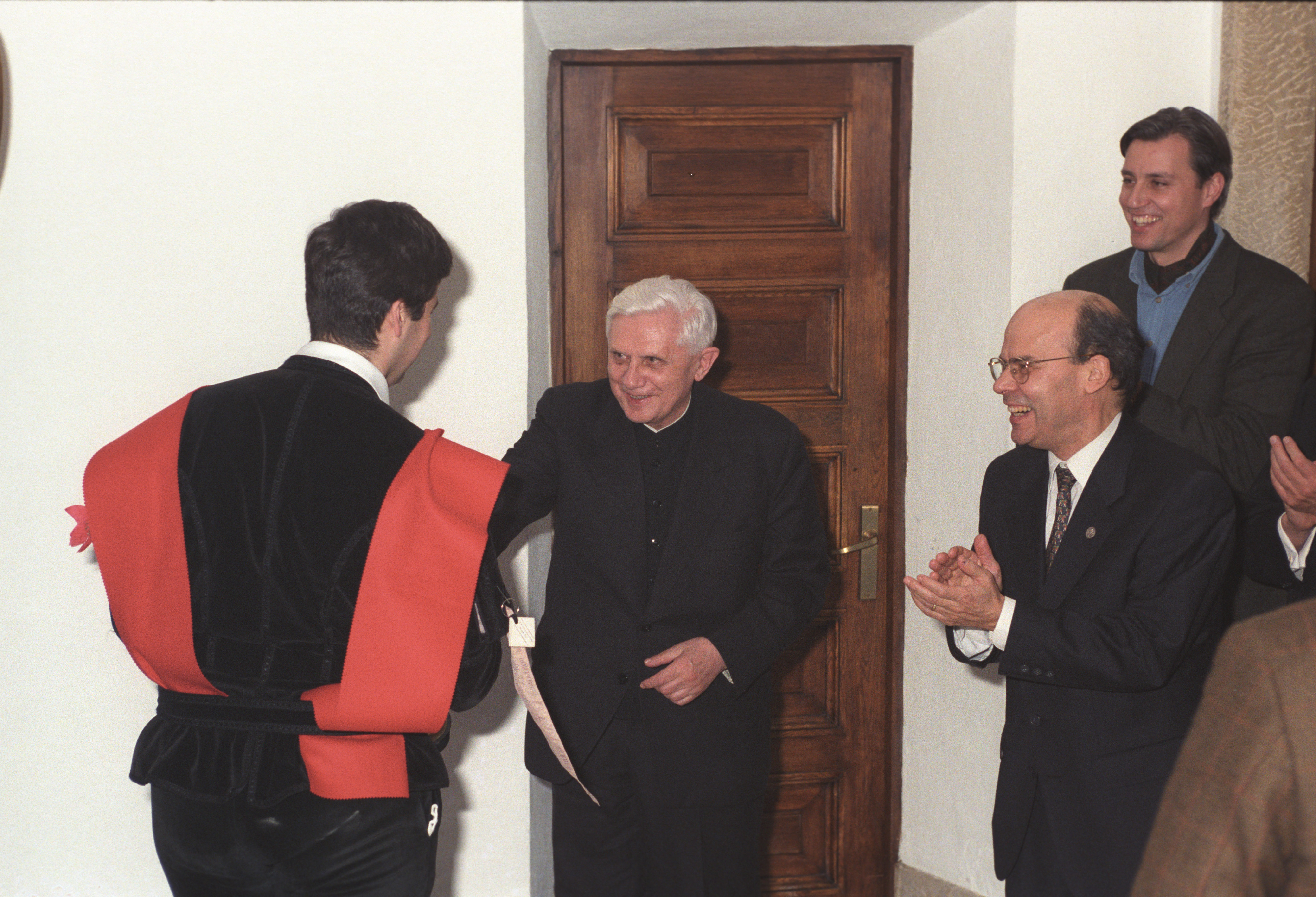 Era evidente a lo largo de aquellos días que el Cardenal Ratzinger se sentía a gusto entre los universitarios: estaba en su ambiente. El nuevo Doctor unía en su vivencia un rico presente con un entrañable pasado: sus años de estudiante universitario y, sobre todo, sus grandes ideales de profesor universitario. No era infrecuente que el Cardenal, al hilo de una pregunta o de una anécdota, evocase sus años de estudio, de investigación y de docencia. Y, desde luego, era evidente que disfrutaba con cada encuentro, que atendía atentamente a cada pregunta. Todos pudimos captar cómo unía en su vivencia un rico presente con un entrañable pasado: sus años de estudiante y, sobre todo, sus grandes ideales como profesor universitario.