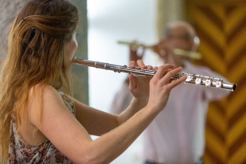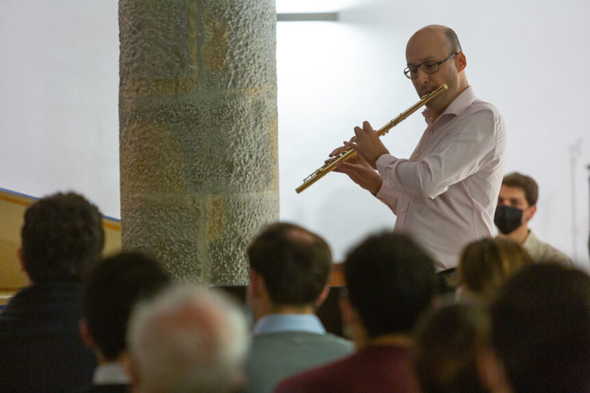 El rafaleño Mariano Bas García (flauta), la pamplonesa Beatriz Pomés Jiménez (flauta) y el donostiarra Pedro J. Rodríguez Larrañaga (clavicenista) son tres profesores y concertistas de prestigio que interpretaron un programa con una selección de obras de Johann Christian Bach, Georg Philipp Telemann, Carl Phillip Emanuel Bach y Johann Joachim Quantz y Johann Sebastian Bach. El público disfrutó con la música y, con sus aplausos, “arrancaron” a los artistas un par de piezas más de propina.