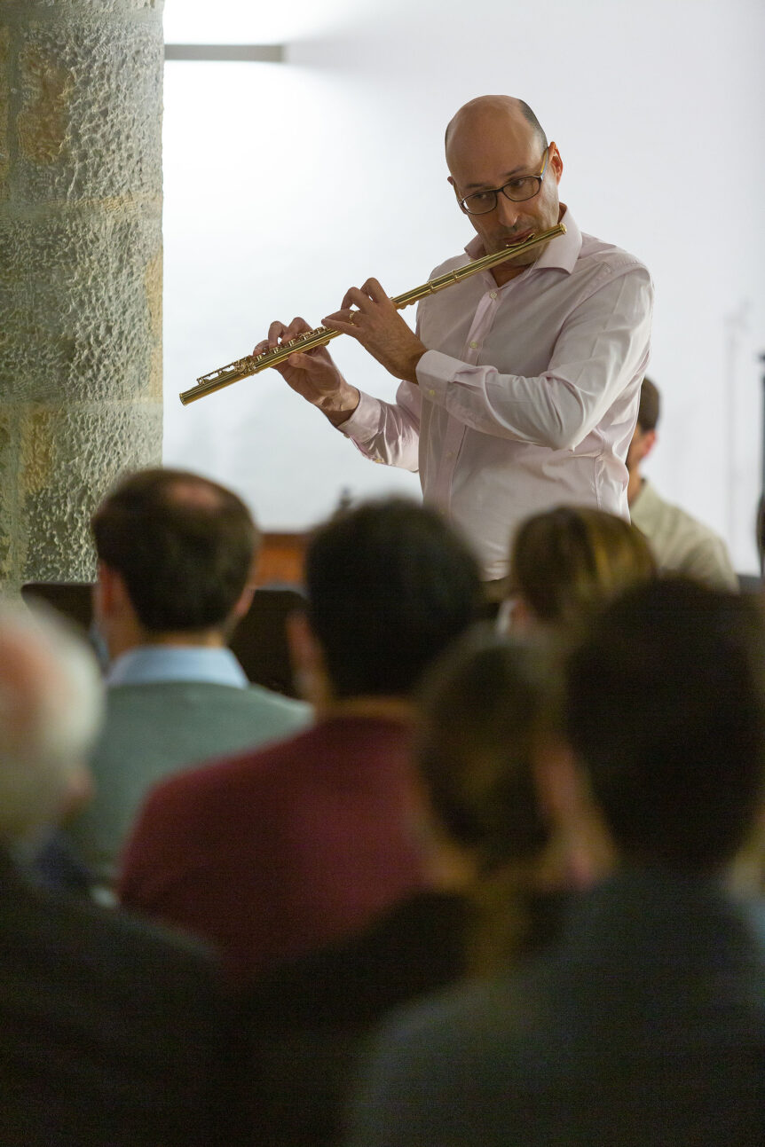 Es uno de los discípulos más destacados del flautista Claudi Arimany, concertista de reconocimiento internacional, con quien suele actuar frecuentemente, siendo heredero de un estilo de interpretar y entender la Música.